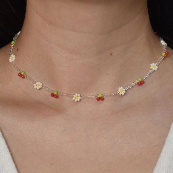 Cherry with daisies necklace 🍒🌼